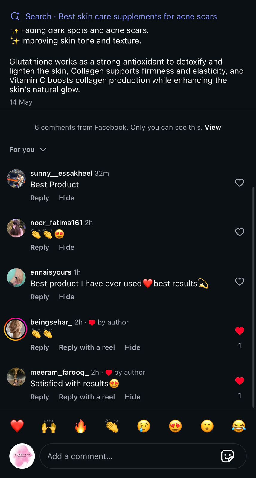 Glutacure supplements are really effective.I used for almost 1.5 months and all darkspots,acne scars.wrinkles are cleared and my skin is glowing.Highly recommended